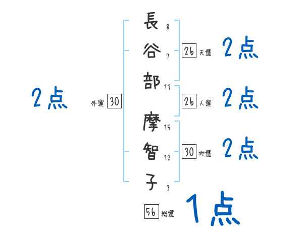 長谷部摩智子さんの画数の鑑定結果
