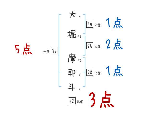 大堀摩耶斗さんの画数の鑑定結果