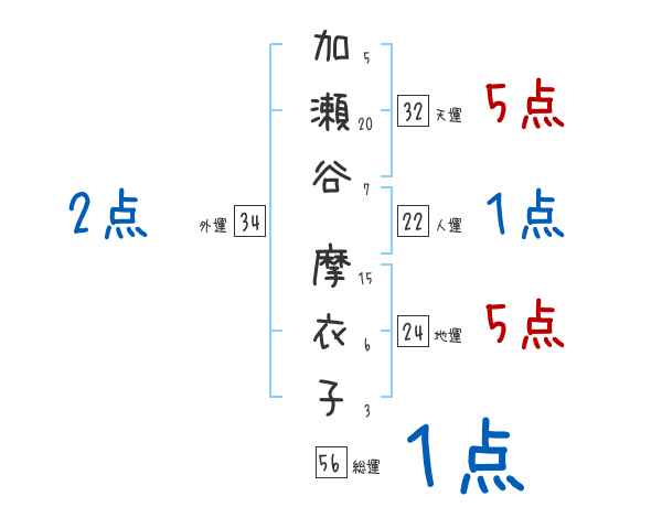 天運![]() | 加瀬谷摩衣子さんの天運は32画の5つ星!柔軟性があり成功する。チャンスが多く金運が良い。 家系が持つ宿命的な運勢を表します。祖先から受け継いだ苗字ですので自分の力が及びません。家柄を象徴します。 |