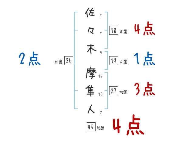 佐々木摩隼人さんの画数の鑑定結果