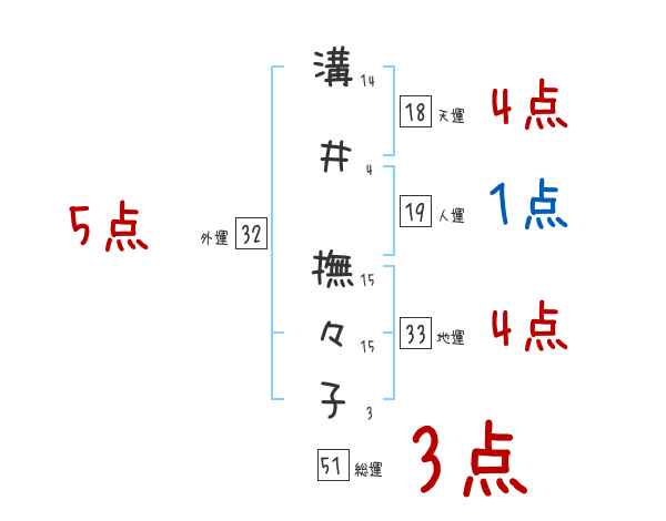 溝井撫々子さんの画数の鑑定結果