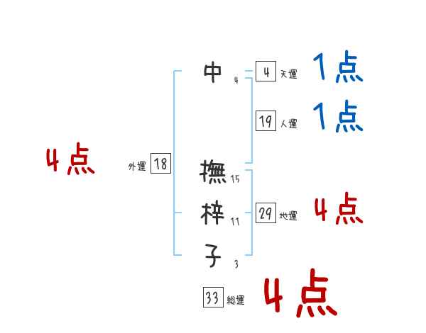 中撫梓子さんの画数の鑑定結果