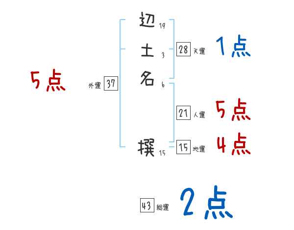 辺土名撰さんの画数の鑑定結果