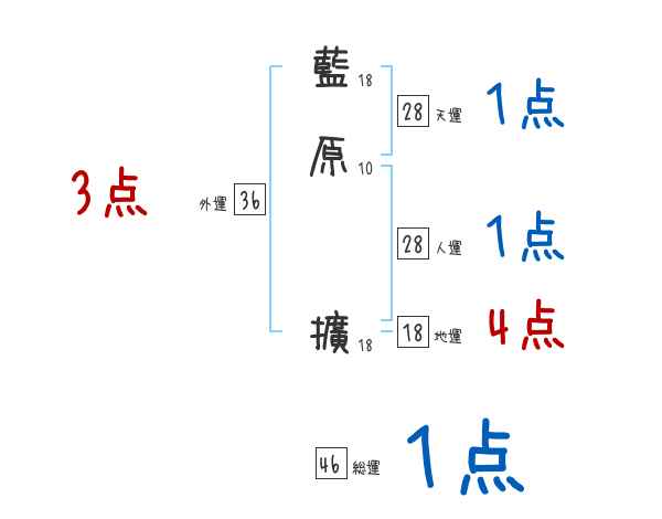 藍原擴さんの画数の鑑定結果