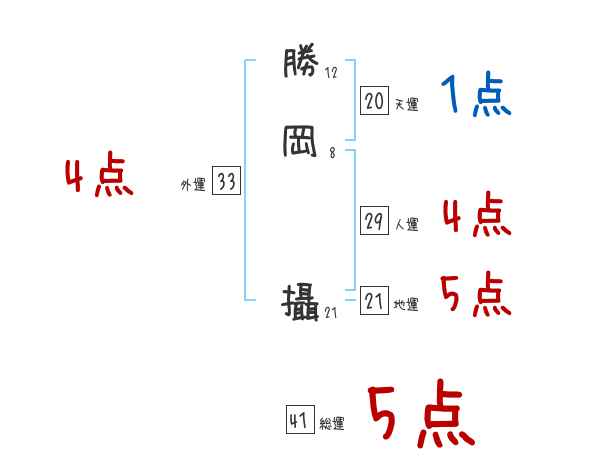 外運![]() | 勝岡攝さんの外運は33画の4つ星!権力志向でプライドが高い。勇気があり運を切り開き成功する。 生活面を象徴する運勢です。外部から受ける影響力を表し、結婚運、家庭運や職場、環境への順応性を表します。 |