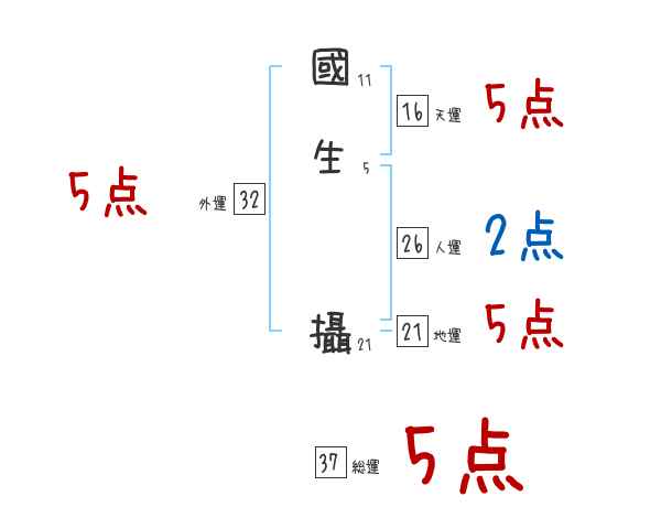 外運![]() | 國生攝さんの外運は32画の5つ星!柔軟性があり成功する。チャンスが多く金運が良い。 生活面を象徴する運勢です。外部から受ける影響力を表し、結婚運、家庭運や職場、環境への順応性を表します。 |