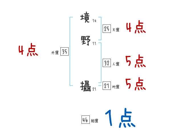 境野攝さんの画数の鑑定結果