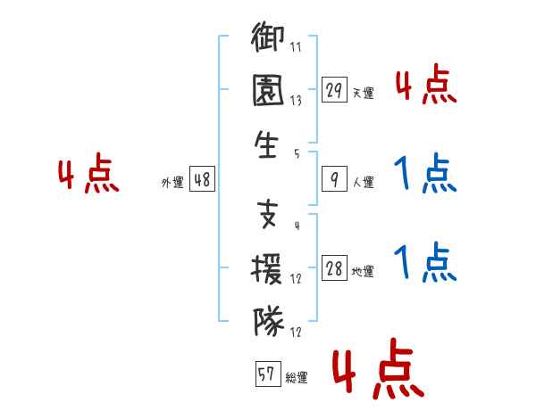 御園生支援隊さんの画数の鑑定結果