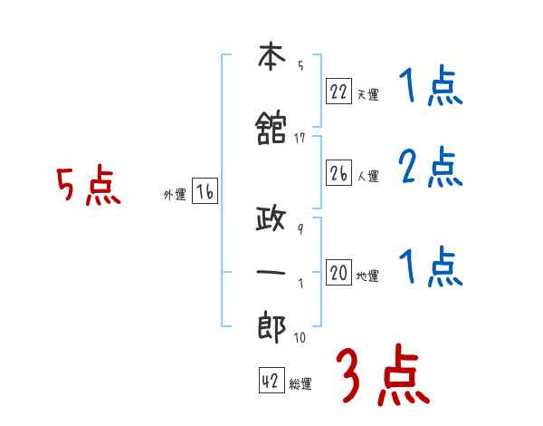 本舘政一郎さんの画数の鑑定結果