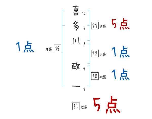 喜多川政一さんの画数の鑑定結果
