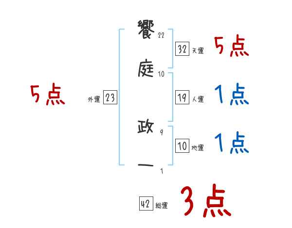 饗庭政一さんの画数の鑑定結果