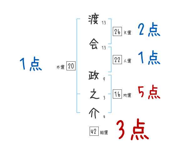 地運![]() | 渡会政之介さんの地運は16画の5つ星!人望が厚く大きく発展する。逆転成功が見える。 個性を表す基礎的な運勢です。性格形成や対人関係、行動力など家庭環境に影響されます。主に誕生してから20歳くらいまでの若年期の運勢を表します。 |