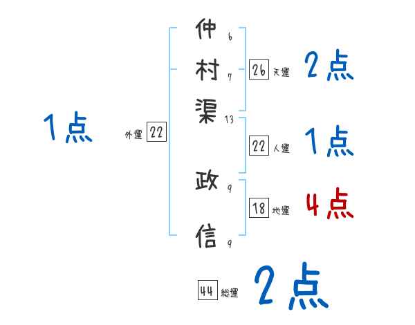 仲村渠政信さんの画数の鑑定結果