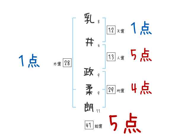 総運![]() | 乳井政柔朗さんの総運は41画の5つ星!大志を抱き、目標に向かって実力を発揮し達成する。温和な性格。 あなたの人生を表す1番重要な運勢です。生涯を通じて影響する総合運となり、主に50歳以降の晩年期に影響を及ぼします。 |
