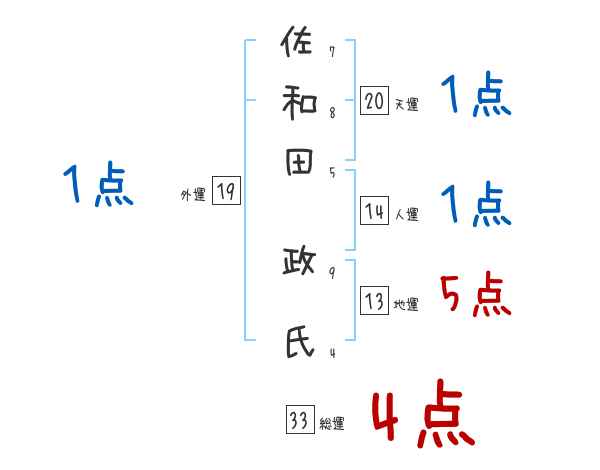 外運![]() | 佐和田政氏さんの外運は19画の1つ星!優れた才能を持ちますが、協調性が足りないことも。周りの人と協力する事を意識しましょう。 生活面を象徴する運勢です。外部から受ける影響力を表し、結婚運、家庭運や職場、環境への順応性を表します。 |