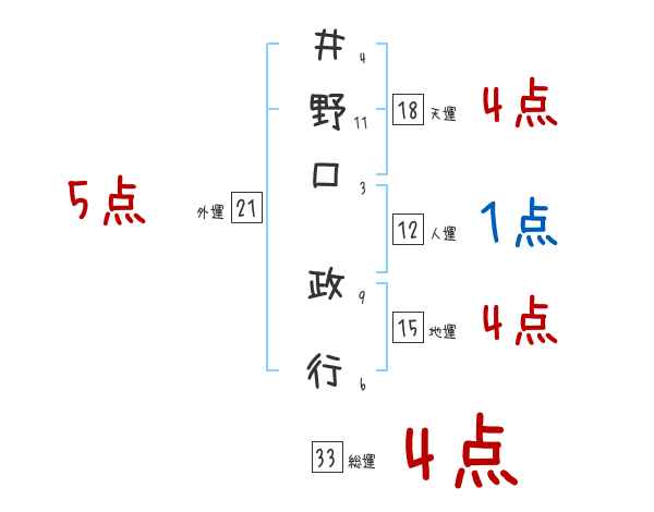 井野口政行さんの画数の鑑定結果