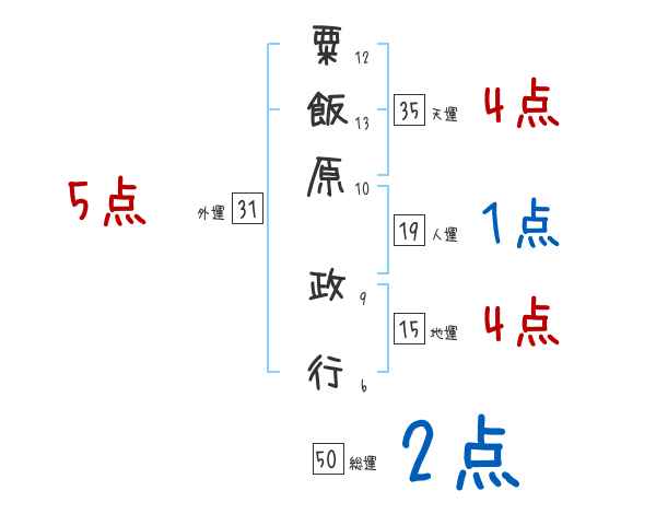 粟飯原政行さんの画数の鑑定結果