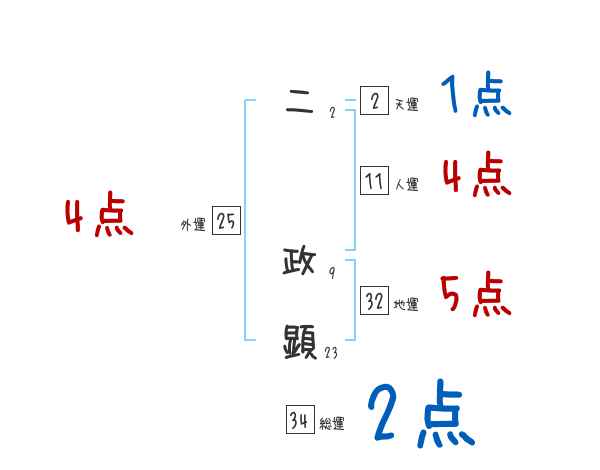 天運![]() | 二政顕さんの天運は2画の1つ星!優しいですが積極性や意思の強さに欠ける傾向があります。家庭環境の乱れに注意しましょう。 家系が持つ宿命的な運勢を表します。祖先から受け継いだ苗字ですので自分の力が及びません。家柄を象徴します。 |