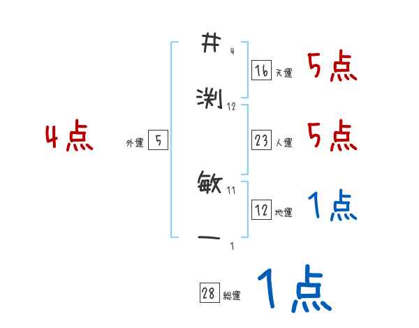外運![]() | 井渕敏一さんの外運は5画の4つ星!健康で安泰。協調性に優れ、財産に恵まれる。 生活面を象徴する運勢です。外部から受ける影響力を表し、結婚運、家庭運や職場、環境への順応性を表します。 |