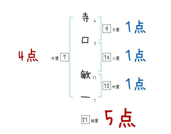 寺口敏一さんの画数の鑑定結果