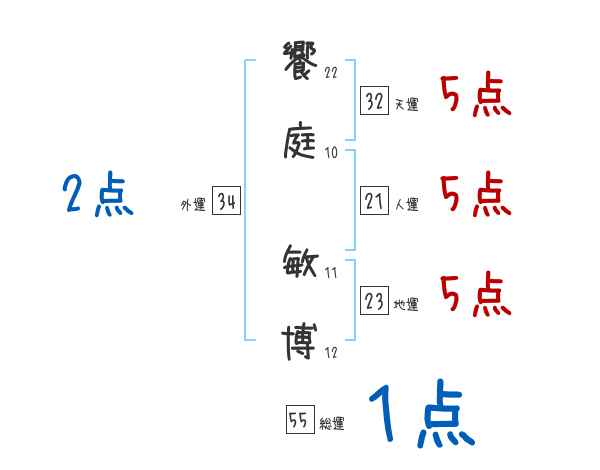 饗庭敏博さんの画数の鑑定結果