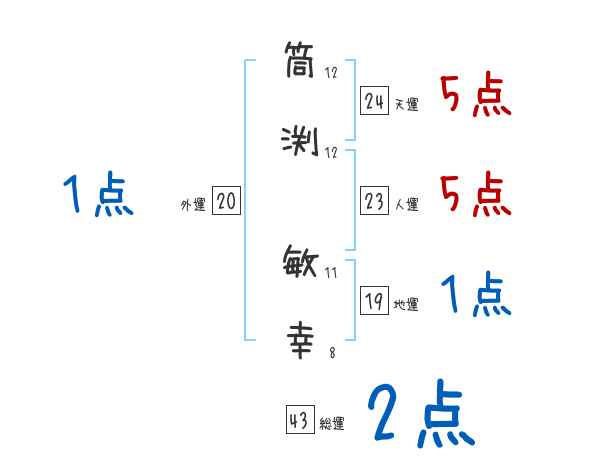 筒渕敏幸さんの画数の鑑定結果