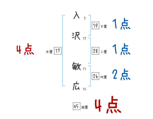 入沢敏広さんの画数の鑑定結果