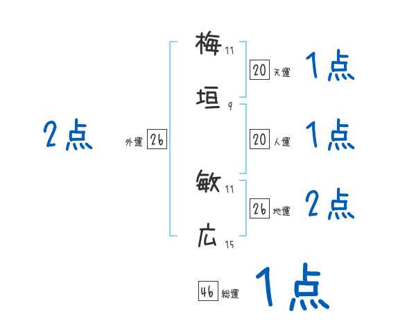梅垣敏広さんの画数の鑑定結果