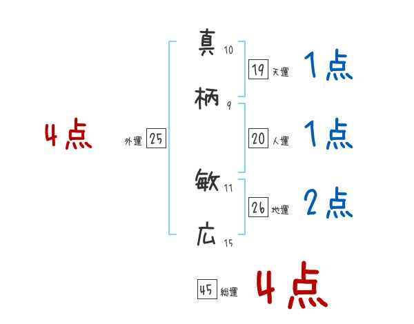 真柄敏広さんの画数の鑑定結果