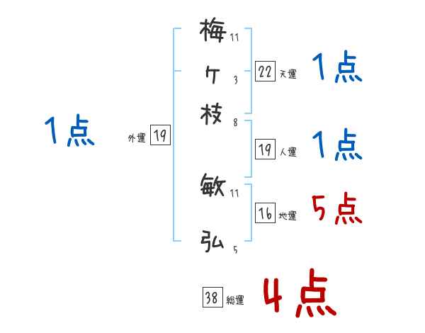 梅ヶ枝敏弘さんの画数の鑑定結果