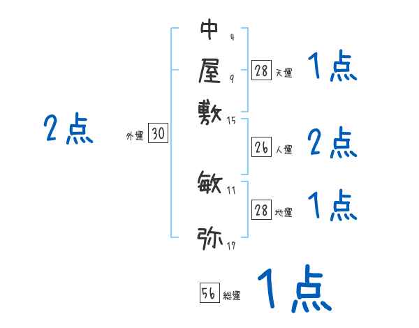 天運![]() | 中屋敷敏弥さんの天運は28画の1つ星!家庭環境に注意。スポーツで活躍できる能力があるかも。 家系が持つ宿命的な運勢を表します。祖先から受け継いだ苗字ですので自分の力が及びません。家柄を象徴します。 |