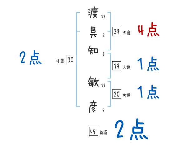 渡具知敏彦さんの画数の鑑定結果