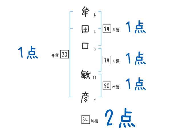 牟田口敏彦さんの画数の鑑定結果