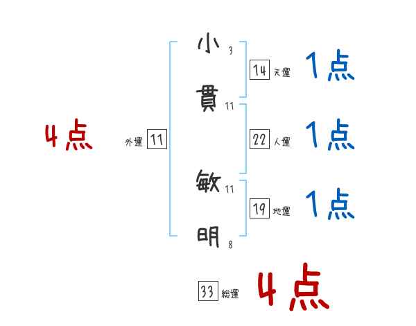 小貫敏明さんの画数の鑑定結果