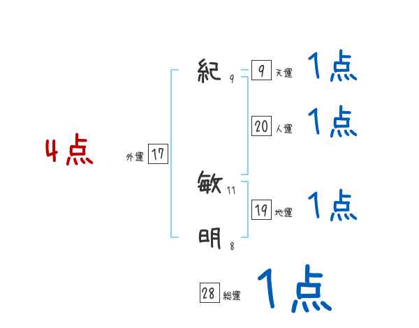 紀敏明さんの画数の鑑定結果