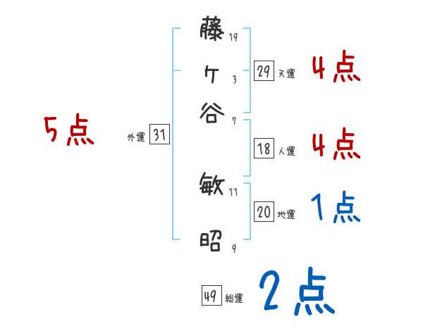 藤ヶ谷敏昭さんの画数の鑑定結果