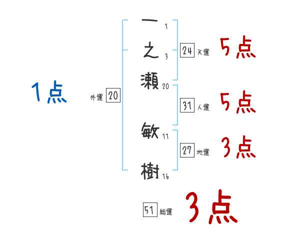 一之瀬敏樹さんの画数の鑑定結果