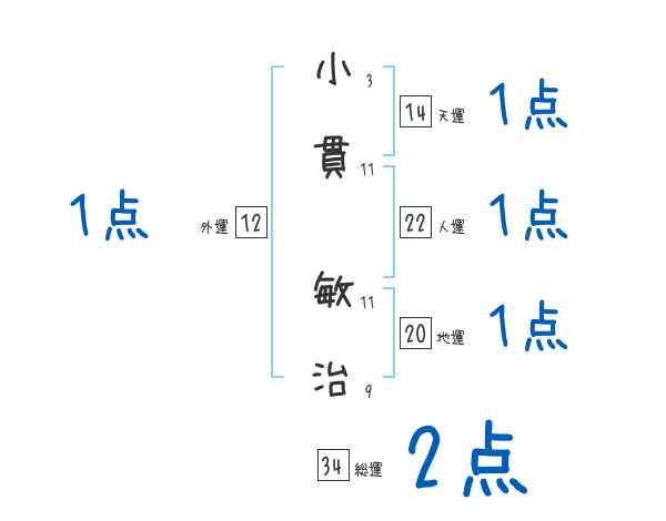 小貫敏治さんの画数の鑑定結果
