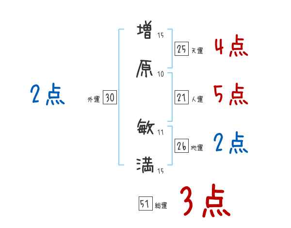 総運![]() | 増原敏満さんの総運は51画の3つ星!変化が激しく、危険に注意。堅実な性格。 あなたの人生を表す1番重要な運勢です。生涯を通じて影響する総合運となり、主に50歳以降の晩年期に影響を及ぼします。 |