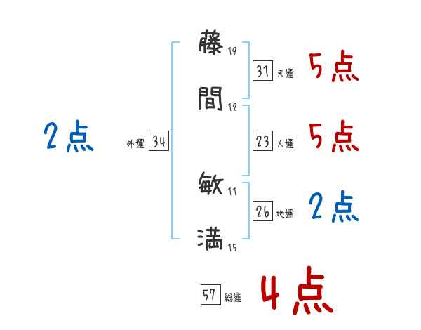 藤間敏満さんの画数の鑑定結果