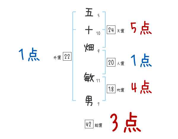 五十畑敏男さんの画数の鑑定結果