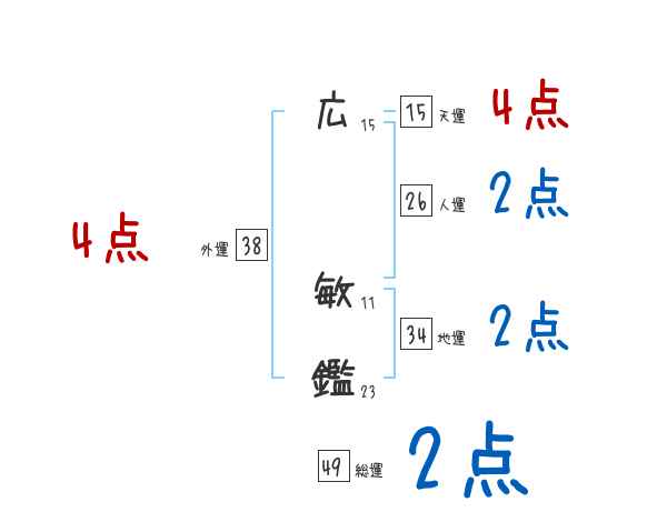 天運![]() | 広敏鑑さんの天運は15画の4つ星!人徳があり出世する。順調に物事を進め円満な人生。 家系が持つ宿命的な運勢を表します。祖先から受け継いだ苗字ですので自分の力が及びません。家柄を象徴します。 |