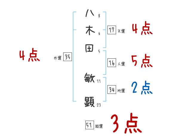 八木田敏顕さんの画数の鑑定結果