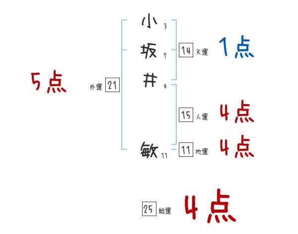 外運![]() | 小坂井敏さんの外運は21画の5つ星!統率力がある。独立し成功する。名誉を手に入れる。 生活面を象徴する運勢です。外部から受ける影響力を表し、結婚運、家庭運や職場、環境への順応性を表します。 |