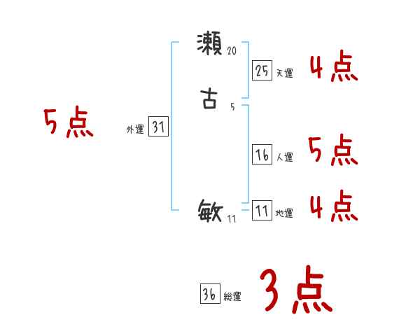 瀬古敏さんの画数の鑑定結果