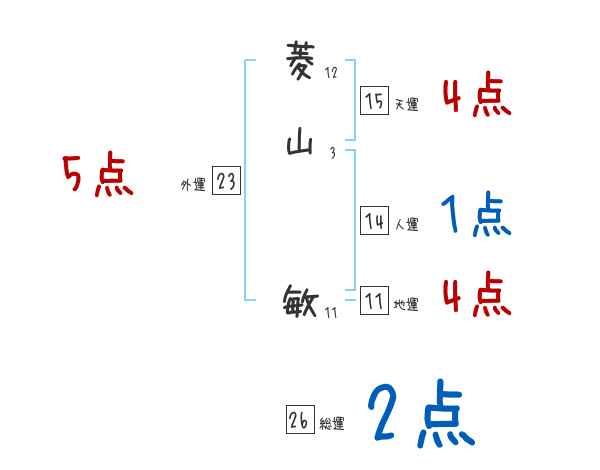 菱山敏さんの画数の鑑定結果