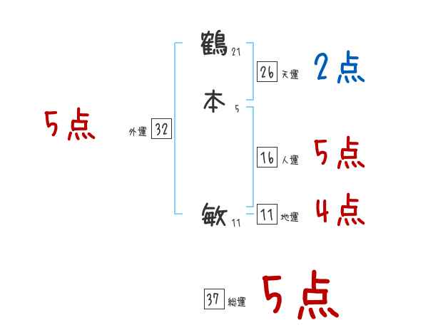 鶴本敏さんの画数の鑑定結果