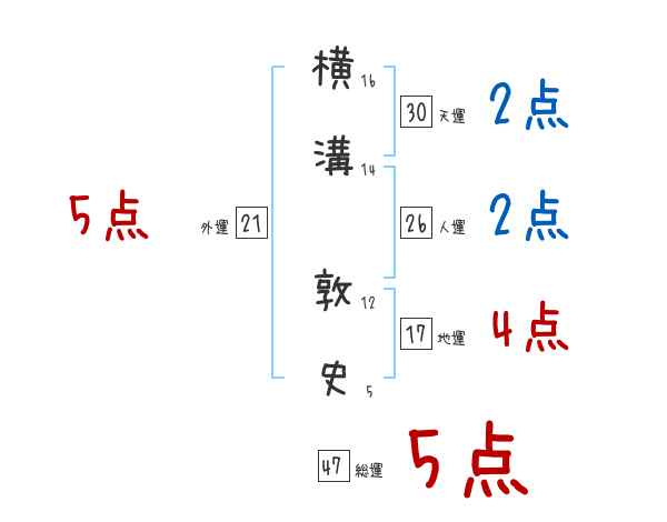 天運![]() | 横溝敦史さんの天運は30画の2つ星!浮き沈みの激しさに注意しましょう。 家系が持つ宿命的な運勢を表します。祖先から受け継いだ苗字ですので自分の力が及びません。家柄を象徴します。 |
