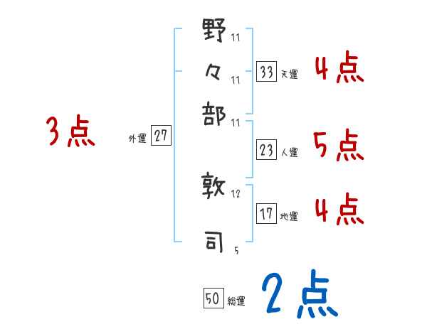 野々部敦司さんの画数の鑑定結果
