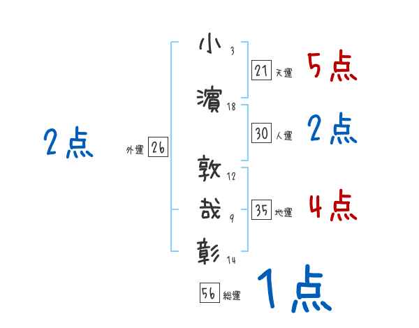 小濵敦哉彰さんの画数の鑑定結果